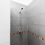Bathroom facilities also include a separate toilet, a shower, and a washing machine. There are a hair dryer and bath sheets for guests' comfort.